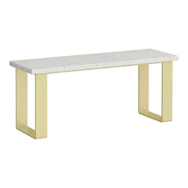 Arezzo White Terrazzo Bathroom Bench with Brushed Brass Frame (1100 x 350mm)