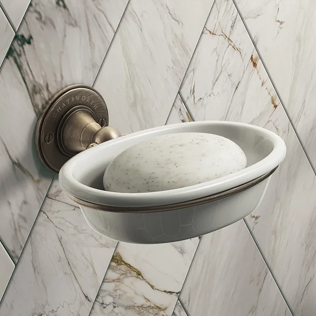 Chatsworth 1928 Traditional Ceramic Soap Dish & Antique Brass Effect Holder