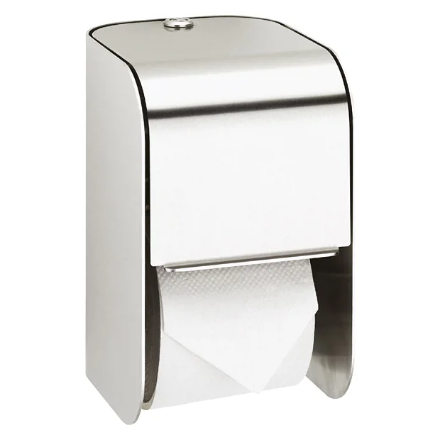 The Xinox range from Franke features innovative designs that stand out in high specification washrooms. This double toilet roll holder is made from 2mm stainless steel and finished with InoxPlus anti-fingerprint coating. It features a lockable outer case and holds 2 rolls with a maximum diameter of 120mm. Once the first roll has been used the holder will cleverly release the second roll. Includes stainless steel screws and dowels.
