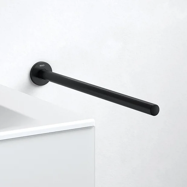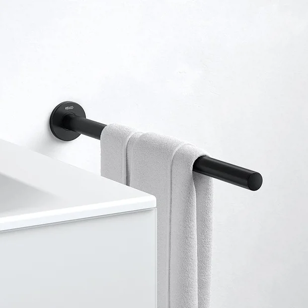 Functional and stylish, the Keuco Plan accessory range offers a wide collection of practical products to choose from. This Fixed Single Towel Rail is designed in a cylindrical form with rounded edges and is available in two sizes. Made from premium materials with a sleek matt black finish.