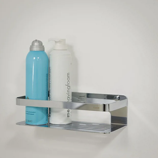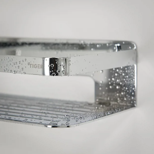 Keep your bathroom organised and tidy with the handy Tiger Caddy shower basket. The flat bottom with a high rim keeps toiletries firmly in the rack and the drainage slots allow the water to drain with ease. The softly finished corners ensure that you can clean the basket without risking your own fingers. Made of corrosion-resistant steel and finished in chrome.