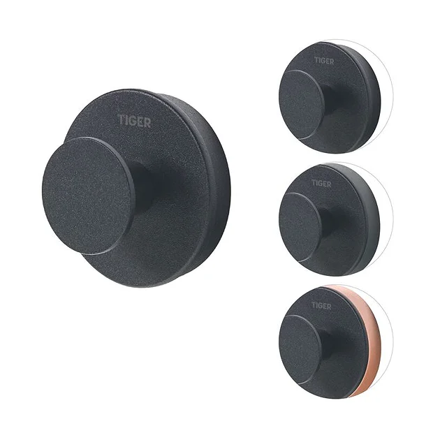 The Tiger Urban Large Towel Hook in Black comes with two decor rings. The decor rings, in the colour copper and grey, make it possible to add a subtle color accent. It is also possible to mount the hook without the decor ring, making it very easy to adapt the product to the desired style.