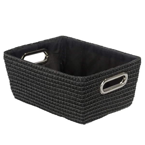 The Chromo black rectangular bathroom storage basket from Wenko, made from high quality PP-meshwork with a cotton lining and chrome finished metal grips. A perfect solution for storing your toilet rolls or bathroom toiletries, keeping your bathroom tidy and clutter-free.