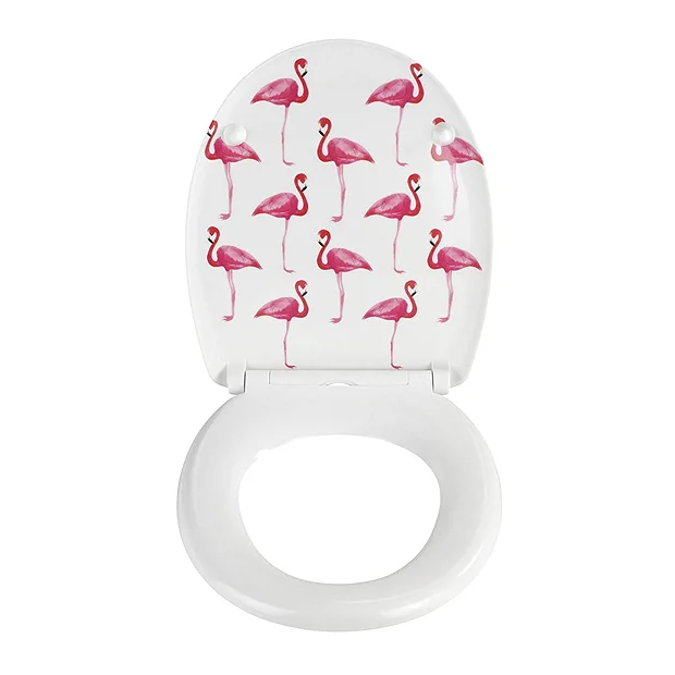 This high quality seat from Wenko features an elaborate flamingo design. Manufactured using high-quality scratch proof thermoset plastic with soft close rust-proof stainless steel hinges and features a simple “Fix-Clip” mounting to allow quick release of the seat and lid for easy cleaning.